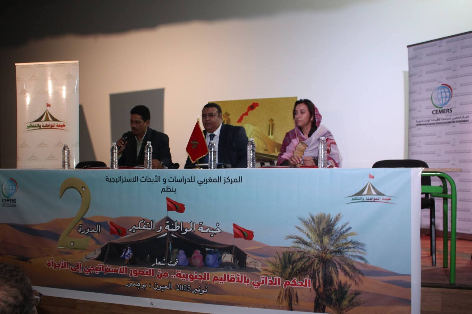 شهدت دار الثقافة مدينة العيون مساء اليوم تنظيم لقاء تواصلي موسع خُصص لعرض ومناقشة آفاق الحكم الذاتي، بحضور عدد من شباب الجهة وفعالياتها، وذلك تحت عنوان “آفاق الحكم الذاتي: رؤية تنموية واستراتيجية”. وقد شارك في هذا اللقاء الدكتور طارق طارق اتلاتي، رئيس المركز المغربي للدراسات والأبحاث الاستراتيجية، ضمن برنامج زيارة وفد المركز إلى الأقاليم الجنوبية، في إطار الدورة الثانية من مبادرة “خيمة المواطنة والتفكير”. ويأتي هذا اللقاء في إطار الجهود التي يبذلها المركز لتعزيز التواصل مع الفاعلين المحليين، وتقديم تحليلات أكاديمية مستندة إلى المستجدات المتعلقة بقضية الحكم الذاتي، باعتباره خيارًا استراتيجيًا يعزز البعد الجهوي والتنمية المستدامة بالأقاليم الجنوبية. وفي عرضه التقديمي، قدّم الدكتور طارق التلاتي مداخلة شاملة تناول فيها مختلف الجوانب المرتبطة بمقترح الحكم الذاتي، مبرزًا الدور الذي يمكن أن يلعبه هذا النموذج كآلية لتعزيز التنمية المحلية. وأوضح أن النموذج المغربي للحكم الذاتي يقوم على تمكين الجهات من تدبير شؤونها وفق تصور يضمن الفعالية والشفافية، ويعزز حضور الكفاءات المحلية في اتخاذ القرار. وأكد التلاتي أن المرور من الإطار النظري إلى التطبيق الميداني يتطلب مشاركة فعلية للساكنة المحلية، مشددًا على أن الشباب يمثلون عنصرًا أساسيًا في إنجاح هذا المسار، سواء من خلال الانخراط في المشاريع التنموية أو عبر المبادرات المدنية التي تدعم مدلول الجهوية. وقد تميز اللقاء بنقاش تفاعلي واسع، حيث تقدم شباب العيون بجملة من الأسئلة التي لامست قضايا التشغيل، وجودة الخدمات، وآفاق الاستثمار في الأقاليم الجنوبية، إضافة إلى الدور الذي يمكن أن يلعبه الحكم الذاتي في تعزيز جاذبية الجهة على المستوى الوطني والدولي. ونوه المشاركون بالدور الحيوي للشباب في مواكبة الدينامية التنموية التي تعرفها المنطقة، معتبرين أن إشراكهم في النقاش العمومي عنصر أساسي لضمان تنزيل فعلي للمشاريع الاستراتيجية. ويُعد هذا اللقاء محطة جديدة ضمن برنامج “خيمة المواطنة والتفكير”، التي تهدف إلى توفير فضاءات للنقاش المباشر بين الخبراء والمواطنين، ومواكبة الأوراش التنموية المفتوحة بالأقاليم الجنوبية، من خلال تحليل علمي ورؤية تشاركية. واختُتمت الندوة بالتأكيد على أهمية تعزيز الحوار بين مختلف المتدخلين، واعتماد مقاربة تشاركية تضمن إشراك الشباب والفاعلين المحليين في دعم مشروع الحكم الذاتي، بما يسهم في تعزيز النموذج المغربي وتكريس مكانته على الصعيدين الوطني والدولي.