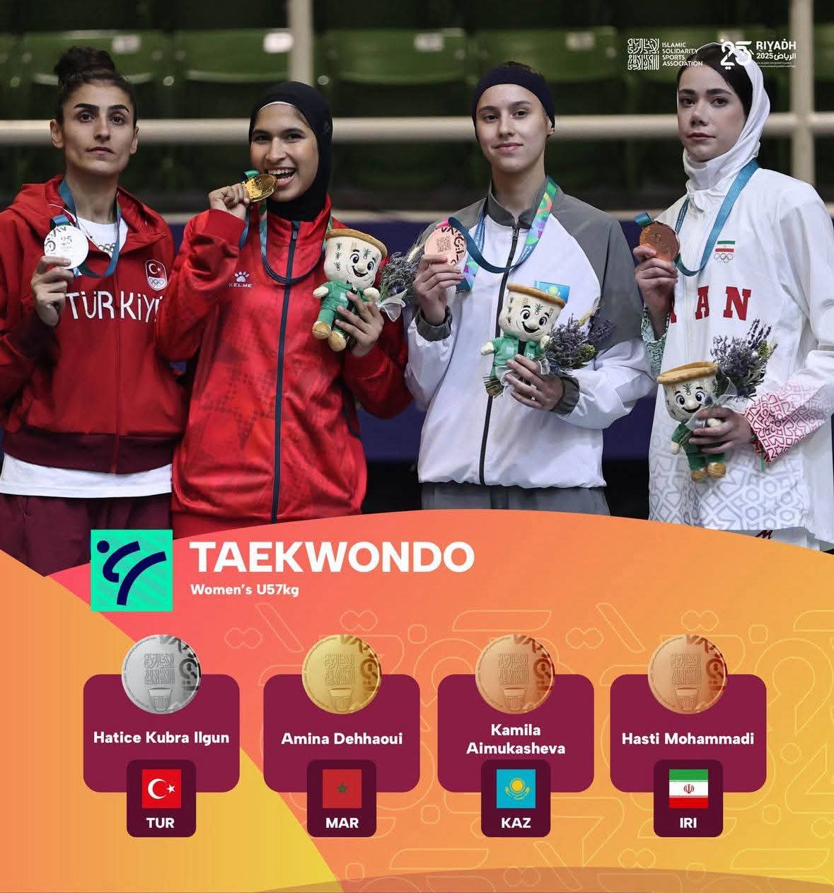 افتتحت البعثة المغربية مشاركتها في الدورة السادسة لألعاب التضامن الإسلامي الرياض 2025 بإنجاز ذهبي مُبهر، وذلك في اليوم الأول من المنافسات، حيث نجحت البطلة أمينة الدحاوي في انتزاع الميدالية الذهبية لمنافسات التايكوندو في وزن أقل من 57 كلغ. هذا التتويج هو إضافة نوعية لسجل الإنجازات الوطنية، ويؤكد الحضور القوي للرياضة المغربية في المحافل القارية والدولية.